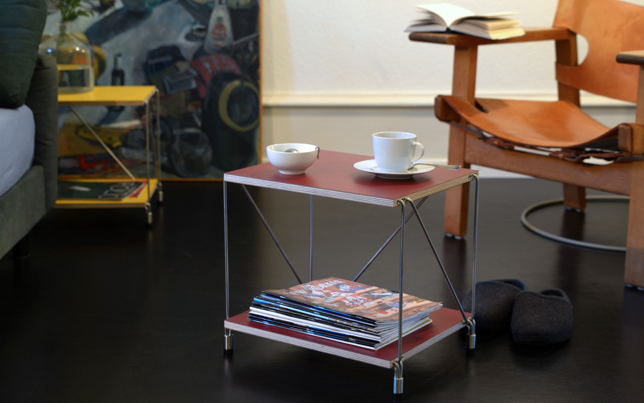 Take away: Kleine STM2-Beistelltischchen und der STM2 Servierboy mit Böden aus Sperrholz oder aus abgekantetem Aluminiumblech sind Möbel, die man nicht zwingend selbst konfigurieren muss - aber natürlich darf, z.B. einen Servierboy mit drei anstelle von zwei Stockwerken, in anderen Fachhöhen, ein Beistelltischchen mit Rollen oder gar mit einer eingebauten Schublade...