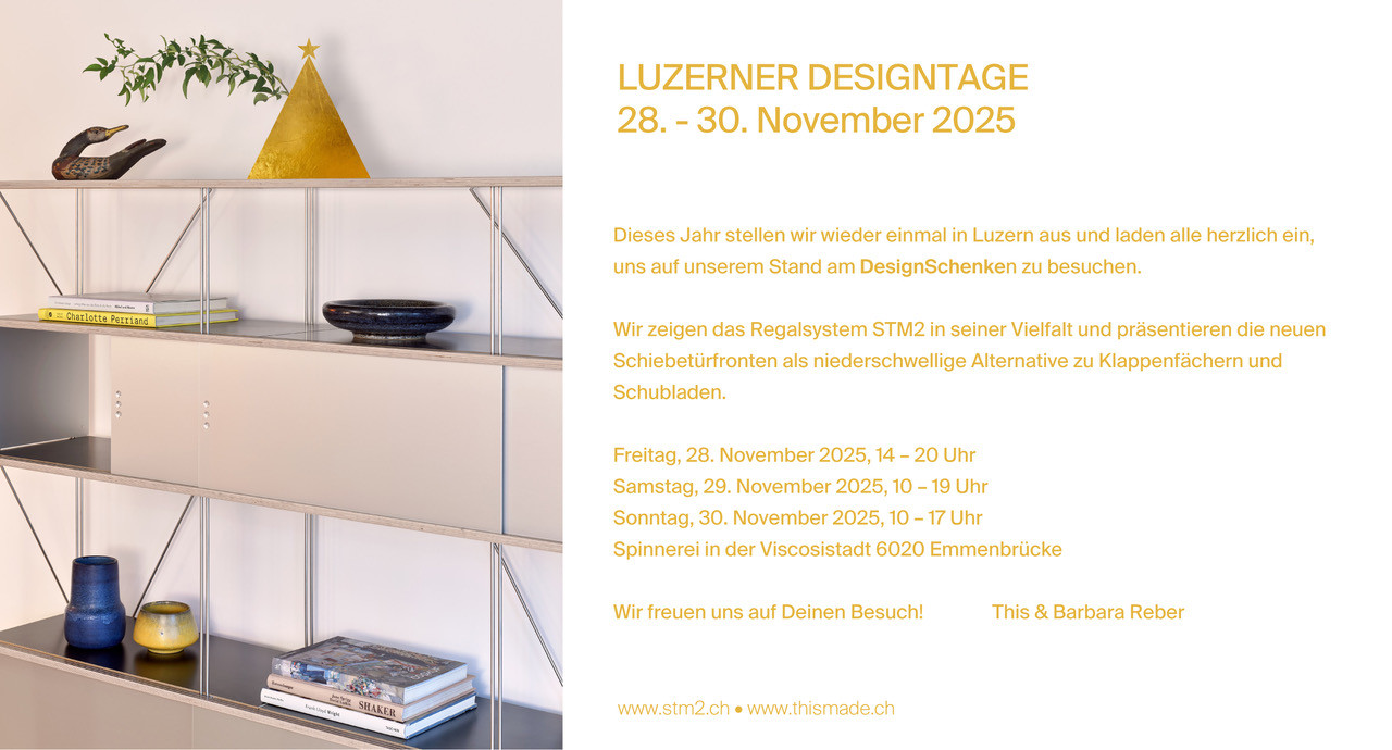Für unseren Auftritt an der Blickfang Zürich, wo wir vor 15 Jahren unser Regalsystem STM2 zum erstenmal öffentlich vorstellten, haben wir eine Sonder-Edition des kleinsten STM2-Moduls auf die Nivellierfüsse gestellt.