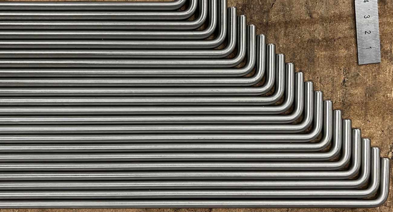 In einer aargauischen Drahtbiegerei werden Edelstahlstangen teils in Handarbeit zugeschnitten, angefast und abgebogen und so zu Stell- und Sperrbügeln, zu Fusshalterungen und Buchstützen verarbeitet. Ebenfalls hier erhalten die kleinen Blechklammern zur Befestigung der Rückwände von Klappenfächern und Schubladenboxen ihren präzisen Abbug.
